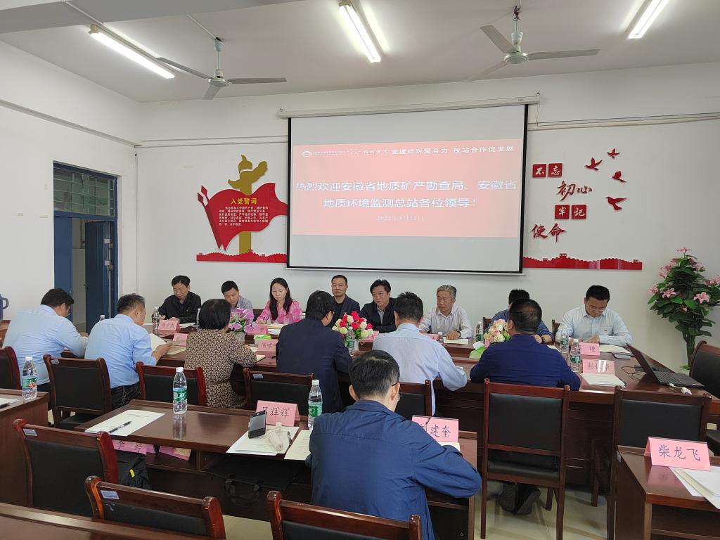 王俊对调研组一行表示热烈欢迎,对安徽省地矿局、安徽省地环总站一直以来的关心和支持表示衷心感谢。王俊重点介绍了88858cc永利官网发展历程、党的建设、师资队伍、学生培养等,希望在校、局、站能在人才培养、科研创新等方面继续深入合作,促进校、局、站协同育人的良好局面。
